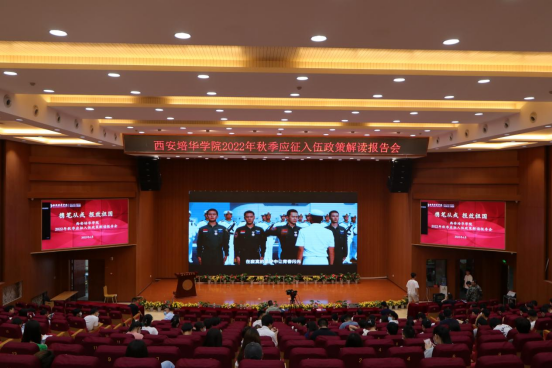 雁塔区人武部部长、雁塔区征兵办公室主任易志浩上校在会上讲话指出,大学生是国家宝贵的人才资源,应征入伍是当代青年学子的光荣使命与应尽责任,并就大学生应征入伍政策从四个方面进行了详细的解读。第一、应征入伍是大学生高质量就业的重要方面。第二、应征入伍是青年学子成才立业的正道捷径。第三、应征入伍是青年学子实现人生价值的重要平台。第四、应正入伍在学校所在地具有比较优势。他号召符合参军入伍条件的学生积极应征入伍报效祖国,到军队里不断锤炼自身,携笔从戎,勇担时代使命,做有抱负、有志向、敢作为的新时代青年。