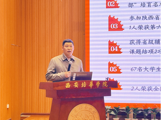 在专题报告环节,党委学工部副部长权勇太以“以饱满精神状态、创建优良学风,全力以赴迎接审核评估工作”为主题,从审核评估对学生、学校的影响,审核评估中涉及学生工作的主要指标,审核评估对大学生学风和文明行为的要求,以及在加强学风建设和学生文明行为养成教育方面应该怎么做几个方面进行了分享。党委学工部副部长姚斌就学生安全管理以及如何开展社区育人等方面进行了分享。西安培华学院团委书记杨媛就“聚焦本科评估 立足第二课堂 全面发挥共青团实践育人的重要作用”做专题报告,她从聚焦本科评估关于第二课堂的具体要求、立足第二课堂彰显实践育人的重要作用、发挥实践育人助力学生发展的成长实效以及基于学生发展服务本科评估的三点思考四个方面进行了阐述。