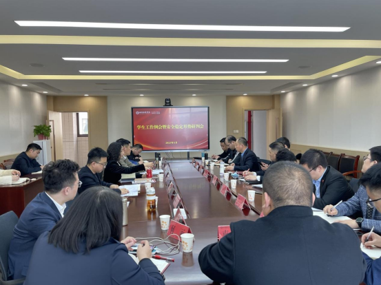 为全面落实、部署每月学生工作重点,提升学生教育、管理、服务水平,3月7日下午,在明德楼第二会议室召开2022-2023学年第二学期3月份学生工作会议,我校党委副书记、副校长姚文静副教授,党委学工部部长蔡亮,党委学工部副部长姚斌、权勇太,各二级学院党委(党总支)书记、副书记等参加了本次会议。本次会议由党委学工部部长蔡亮主持。