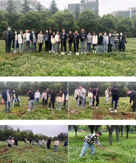 新时代的劳动教育,要让学生动手实践,感受劳动的艰辛。南兵院长和韩斌书记亲身示范后,学生们在辅导员的组织下开始轮流进行劳作,挥起锄头,将结实的土地挖开,敲碎,整平。将地面上的杂草拔除干净,真正地感受劳动的艰辛,感悟节约的分量,深刻诠释了“劳动最光荣”。