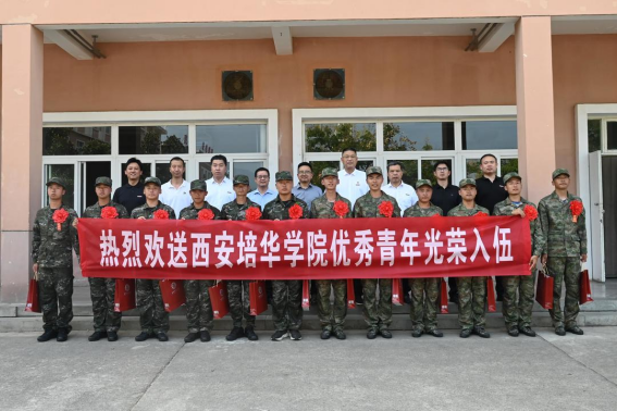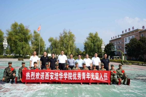 为激发广大师生拥军热情,体现我校对参军大学生的关心关怀,我校党委学工部(征兵工作站)于9月14日前往雁塔区武装部预定兵役前教育训练基地欢送我校新兵踏上军旅征程,履行保家卫国的光荣义务。党委学工部副部长、征兵工作站站长姚斌,医学院党委书记、行政副院长王平安,传媒学院党委书记、行政副院长江俊瑞,建筑与艺术设计学院党委书记、行政副院长王飞,会计与金融学院党委副书记刘斌,人文与国际教育学院党委副书记韩斌,智能科学与信息工程学院党总支书记、行政副院长王林,医学院学生一站式服务站干事包春萍,学生服务中心征兵工作干事黄珂参加此次送兵仪式,欢送新兵入伍。