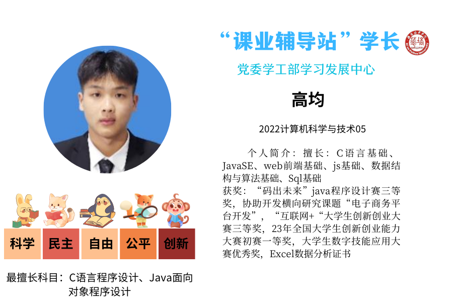 ●“课业辅导站”学长: