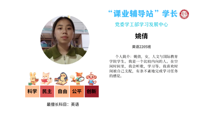 ●“课业辅导站”学长:
