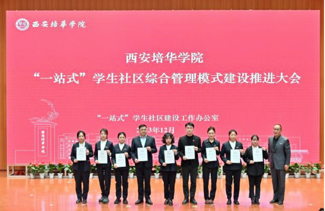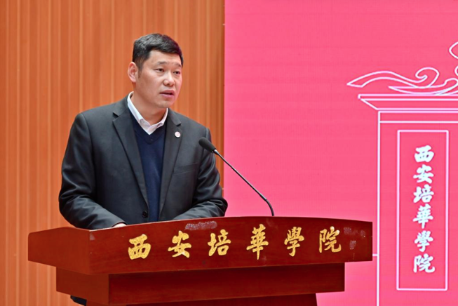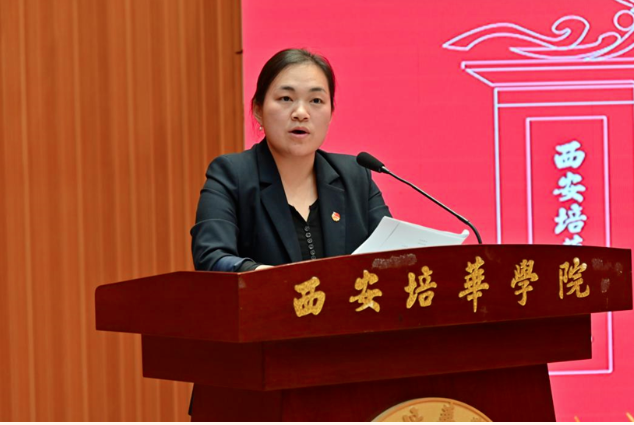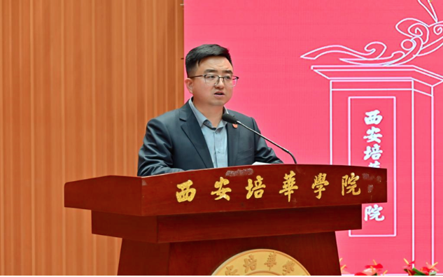 党委学工部副部长权勇太宣读《西安培华学院关于聘任2023-2024学年“一站式”学生社区导师通知》,他指出,根据关于高校“一站式”学生社区建设相关要求,推动各方育人资源下沉社区,践行一线规则,构建全员育人格局,聘任全校各院优秀老师担任社区导师,多维度育人,促进学生全面发展。