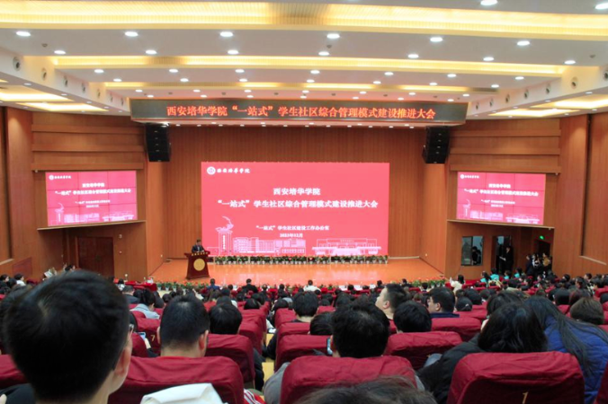 12月7日下午,我校“一站式”学生社区综合管理模式建设推进大会在图书馆报告厅隆重举行,校党委副书记、副校长姚文静,党委学工部部长蔡亮,招生与就业指导中心副主任王琳,教务管理中心副主任王琳,学生潜能发展中心主任韩赟、图书馆副馆长闵波,党委学工部副部长权勇太,校团委书记杨媛,鼎晟物业董事长杨成维,党委工作部部长助理王萌、后勤服务中心基建组组长王辉,校医院副院长王斌,各二级院党委书记、副书记,学校职能部门代表,全体辅导员,社区导师代表,学生楼层长及寝室长代表等共计500余人参会。大会由学工部副部长姚斌主持。