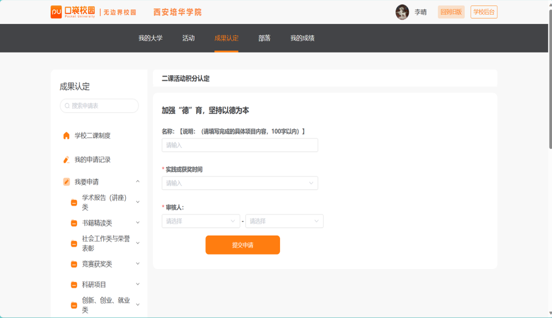 一申请积分认定 (网页版)