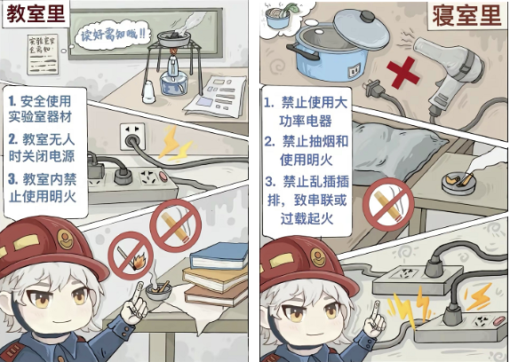 严禁携带危险物品进入校园。同时,注意安全用电,不乱拉乱接电线,离开宿舍时,及时关闭电源及空调等设备。宿舍内不得使用电饭锅、卷发棒、电吹风等违禁用品。返校后及时打开宿舍门窗,保持通风,打扫卫生。