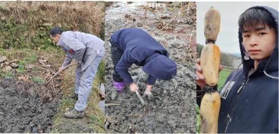 软件工程2101班徐金勇同学在这个寒假,帮助父亲一起挖莲藕,体验了农民的辛勤劳动。