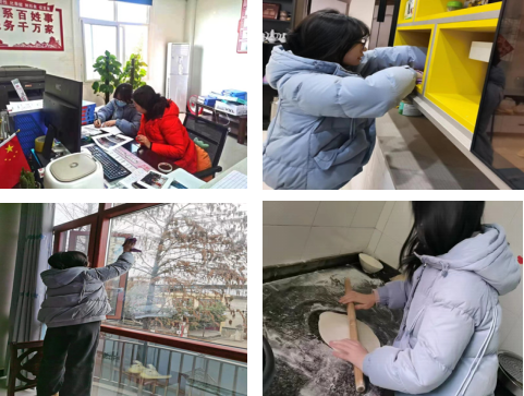 王雅楠 同学在2024年1月15日-25日在陕西省安康市汉滨区开展了五育并举——加强劳育活动,具体内容为:在村委会帮助老人进行年认证、协助整理资料,和家人一起大扫除、和妈妈一起包饺子等一系列实践活动。