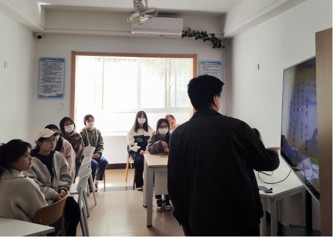 杨媛主任用“唠家常”的方式打破与同学们之间的隔阂,亲切问候参与活动的各位同学们,聊到平时是否有阅读关于毛泽东主席的作品,大多数同学们是较少的会涉及此类书籍的,接下来,杨主任介绍了毛主席的生平与学习经历,“写革命、写江山、写战友、写自己”毛主席的文笔大气磅礴,激励同学们阅读可以提升自我,延伸阅读的领域,以历史眼光探寻诗词的文化内涵。