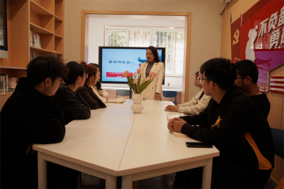 张静教授带领同学们从“走进唐诗”引出大唐盛世——长安,走入诗词盛况下的长安,在诗词中领略大唐风采。引领同学们开展唐诗中的旅行,分别是:第一站蓬莱宫,第二站兴庆宫,第三站曲江池,第四站大唐西市,通过四站古建筑与唐诗的描绘,引导同学们学习唐诗中的长安,领略诗词的魅力。