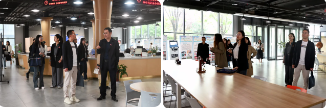 ▲ 来宾一行参观“一站式”服务大厅、学生潜能发展中心及团学组织阵地