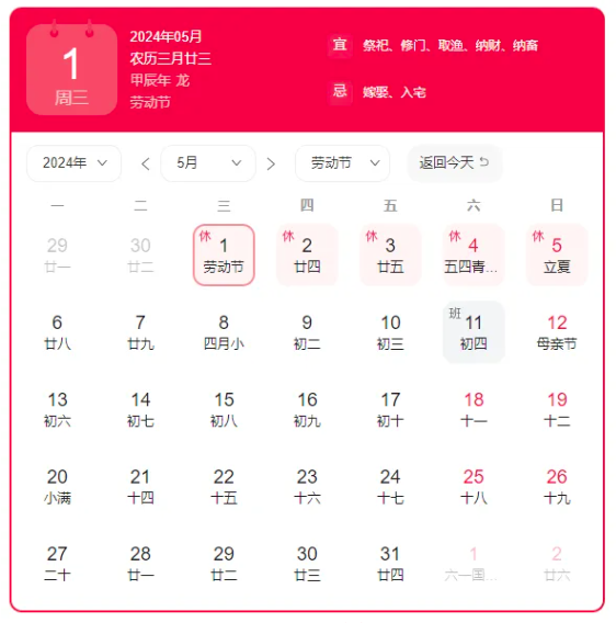 5月1日—5月5日放假,共5天