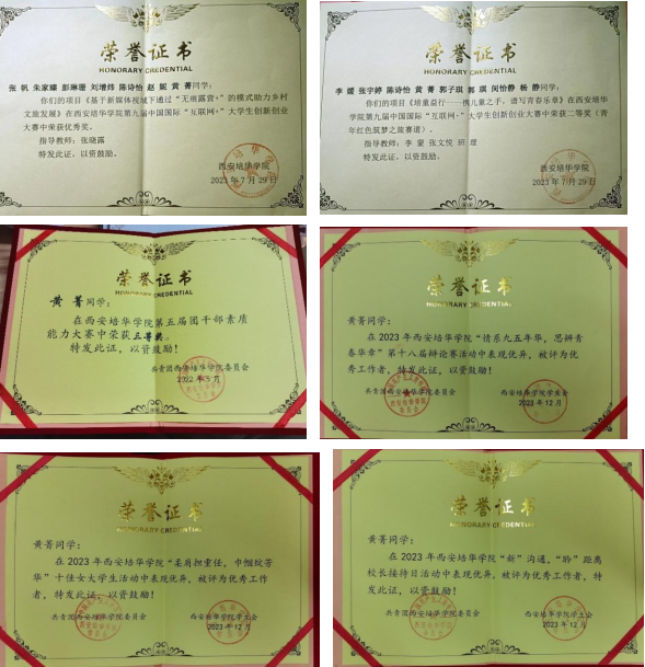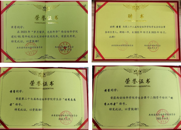 10.2022年5月获得西安培华学院第五届团干部素质能力大赛校三等奖;
