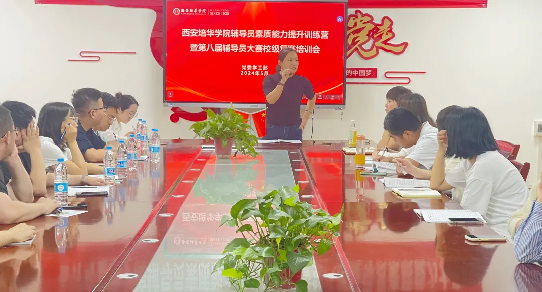 为进一步提升辅导员队伍建设,推动辅导员队伍的专业化和职业化发展。我校于2024年5月30日下午召开辅导员素质能力提升训练营暨第八届辅导员素质能力大赛(复赛)培训学习会。我校党委学工部副部长杨媛、2023年陕西高校辅导员素质能力提升训练营特别表现奖获得者冯莹、晋级复赛的40名选手以及各学院负责队伍建设的老师参加了培训会。