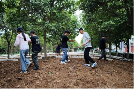 智能科学与工程学院王晨烨说:“我们锄地、播种、结伴浇水,完成了一堂生动的劳动教育实践课,校园因为有我们的一点点贡献变得更加漂亮了。希望我们以后也会像这片基地的小树苗一样,沐光而行、一路生花。”