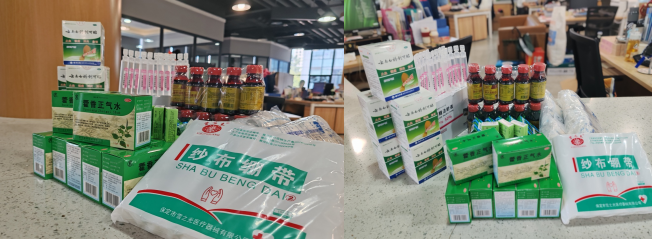 ▲为军训教官配发生活大礼包及医务用品