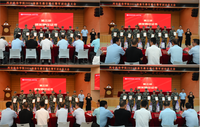 我校学工部部长权勇太宣读了《西安培华学院关于聘任2024级学生军训教官的通知》,此次共有40位来自各二级学院的优秀退役士兵被聘任为学生军训教官。军训是一件极其光荣的任务,聘书更代表了一份沉甸甸的责任。同时,本次军训还为全体教官配发了生活大礼包,为军训顺利开展工作提供后勤保障。