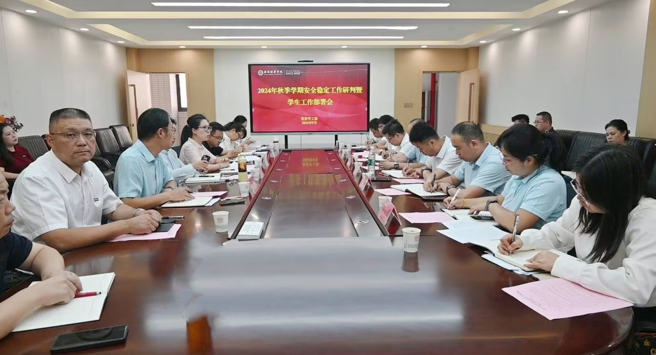 为深入研判2023-2024学年秋季学期安全稳定形势,同时对新学期的学生工作进行全面部署,为学校的教育教学顺利开展提供坚实保障,9月11日下午,在明德楼第三会议室召开了2024年秋季学期安全稳定工作研判暨学生工作部署会。我校党委副书记、副校长姚文静,党委工作部部长陈玲,招生与就业指导中心主任姚斌、副主任王琳,学生潜能发展中心主任韩赟,党委学工部部长权勇太、副部长杨媛,各二级学院党委(党总支)书记、副书记,学生干事、团委书记参加了本次会议。本次会议由党委学工部部长权勇太主持。