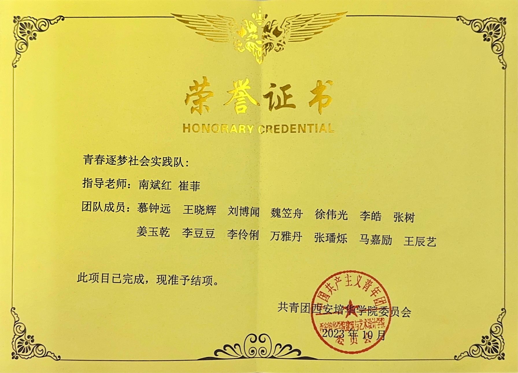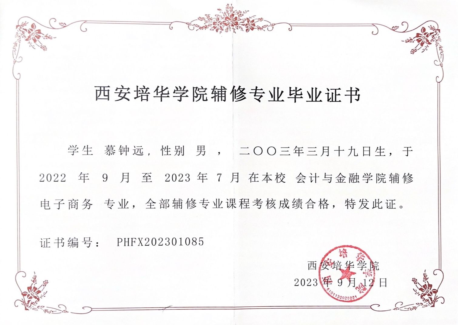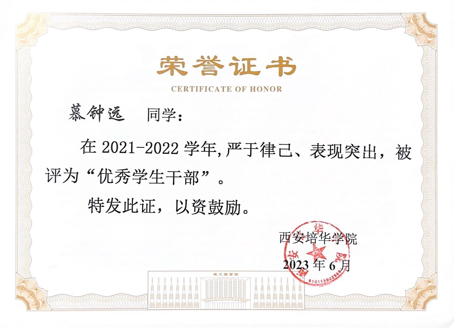 9.2023年3月获得西安培华学院学业进步奖