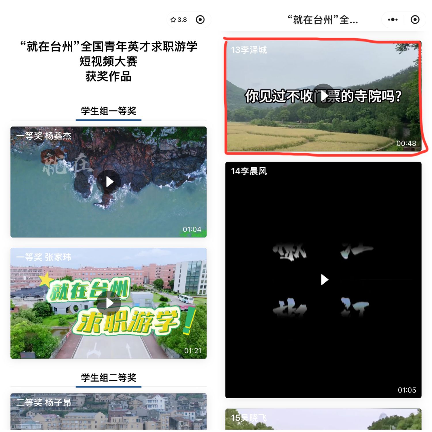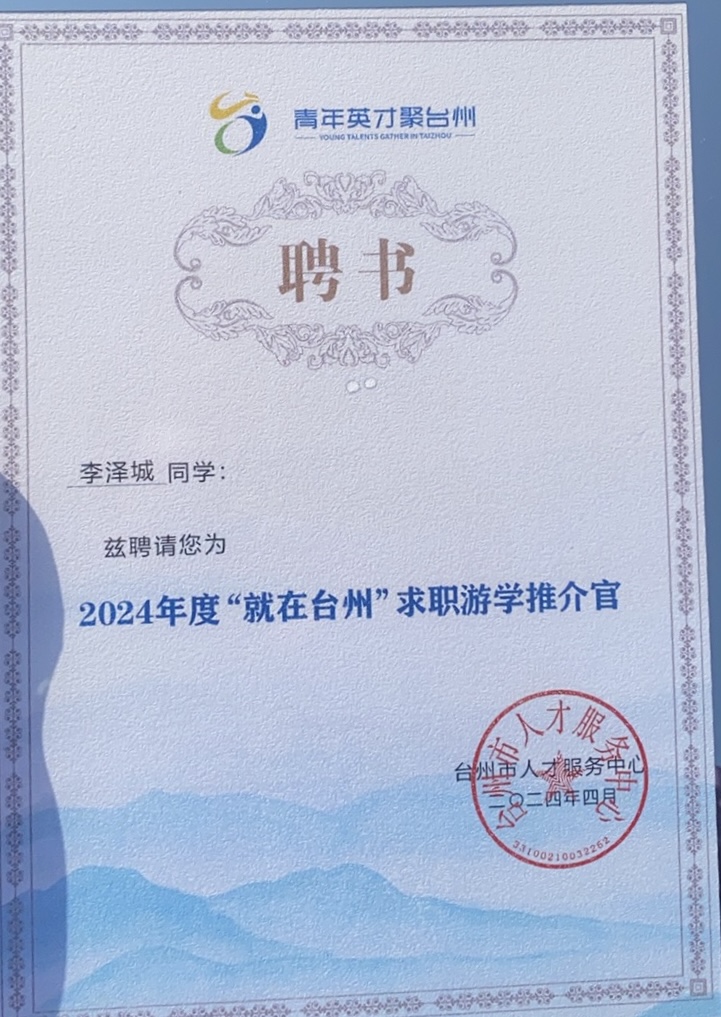 1.2024年4月被聘为“就在台州”求职游学推荐官;