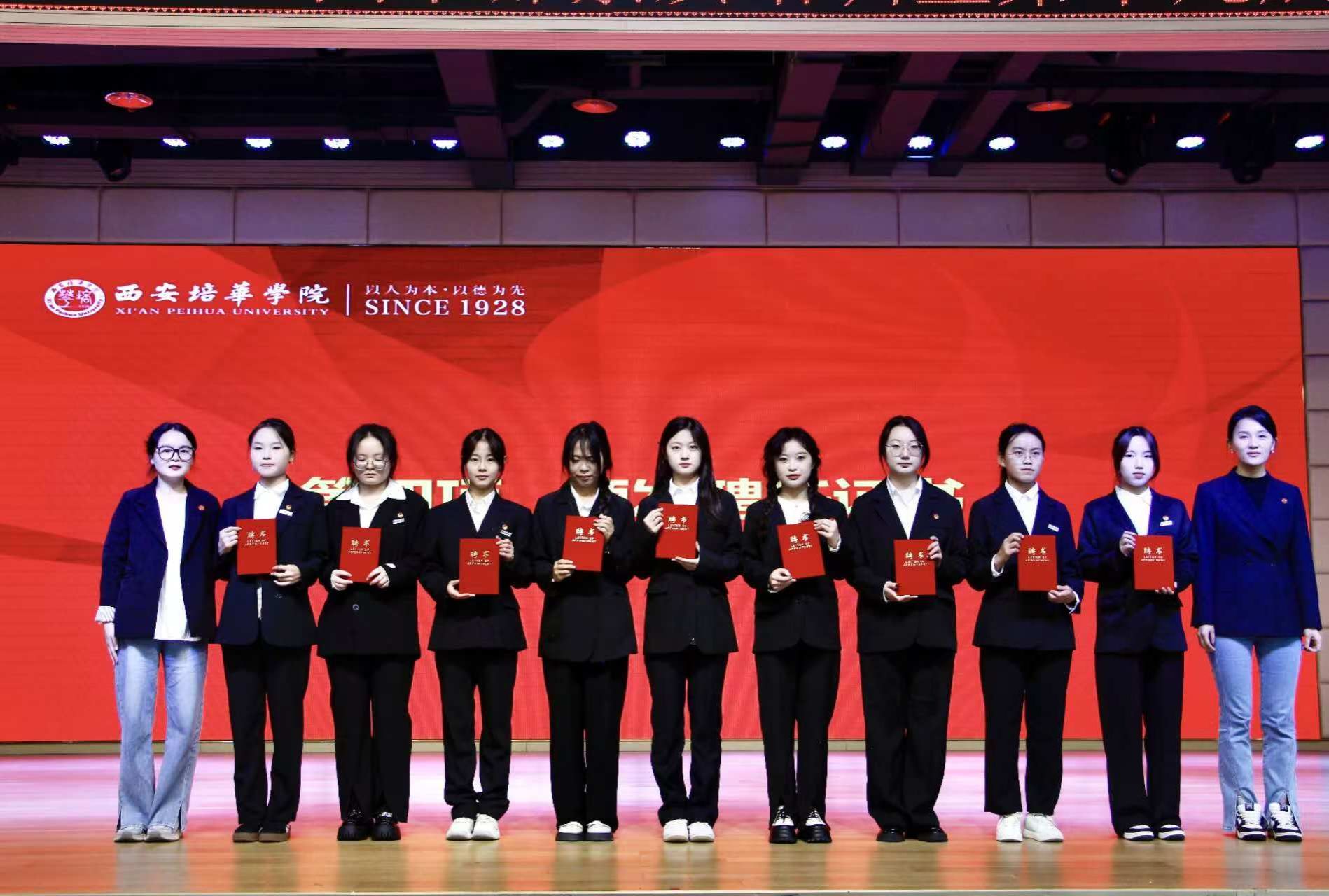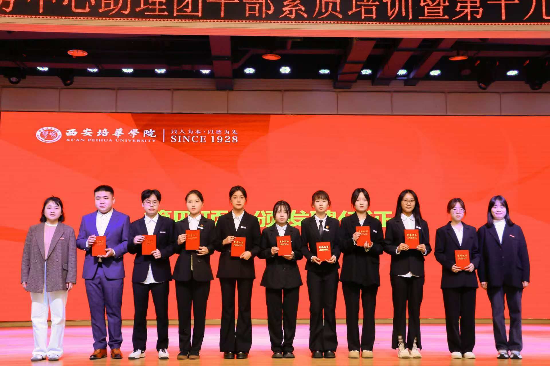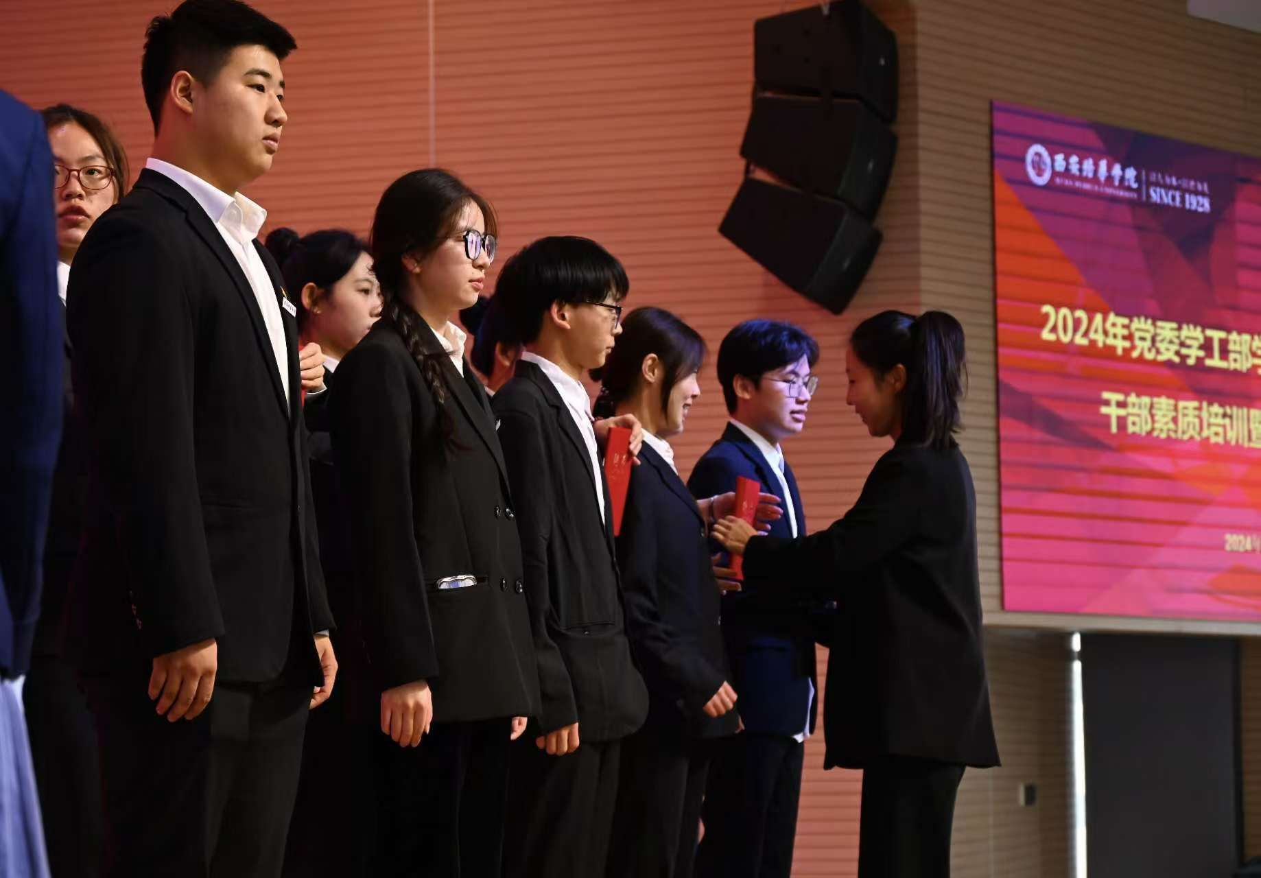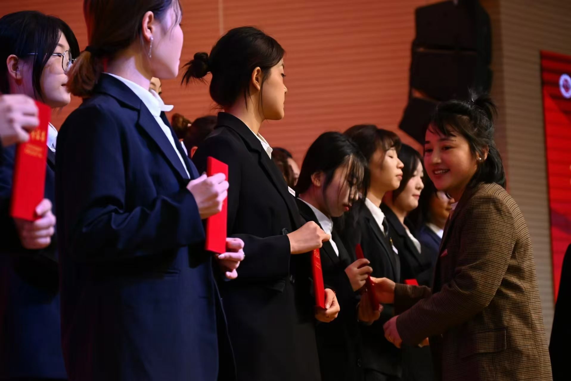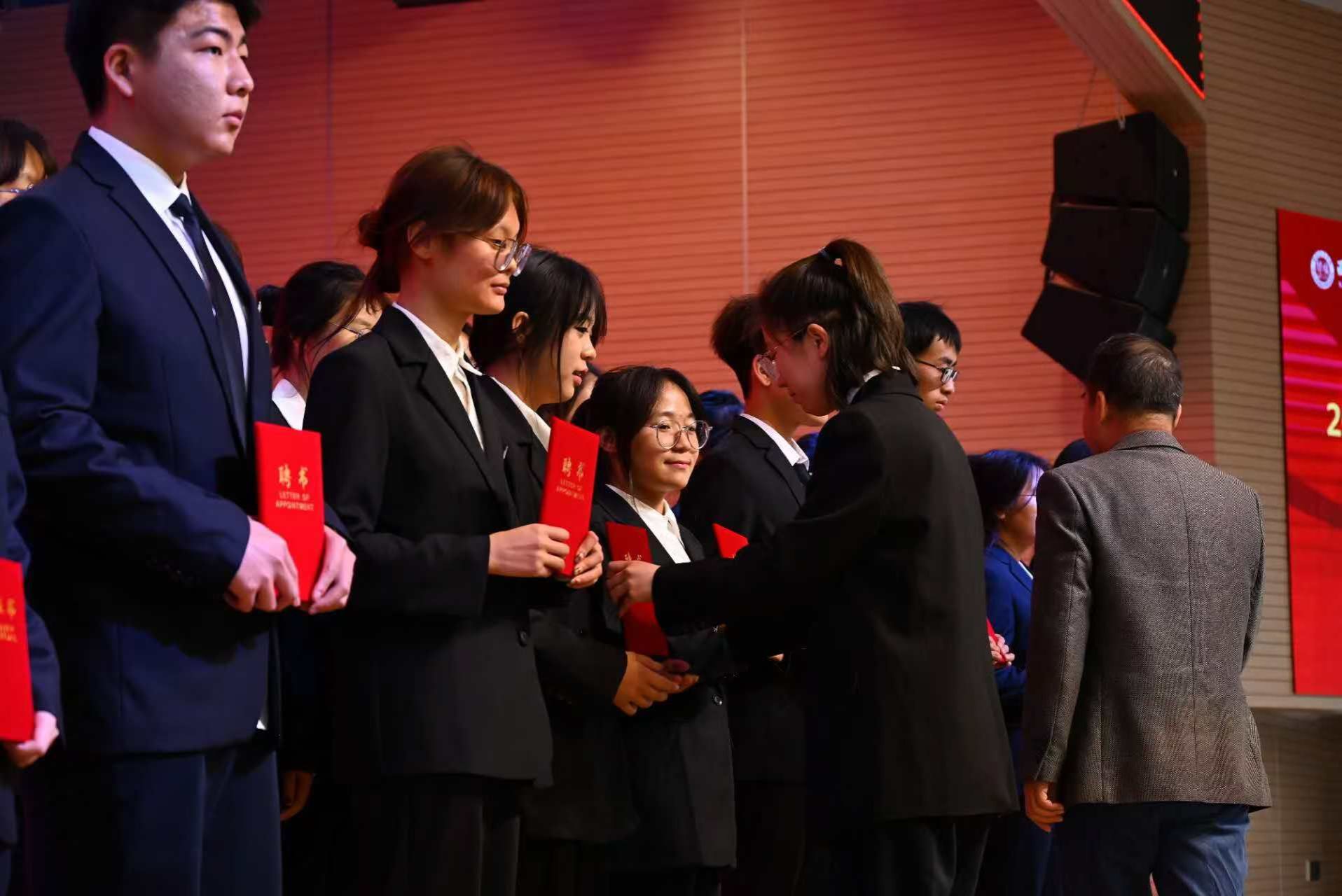 (校团委书记董莹老师、学生服务中心邱含雪老师为主席团成员颁发优秀学生干部荣誉证书及聘书)