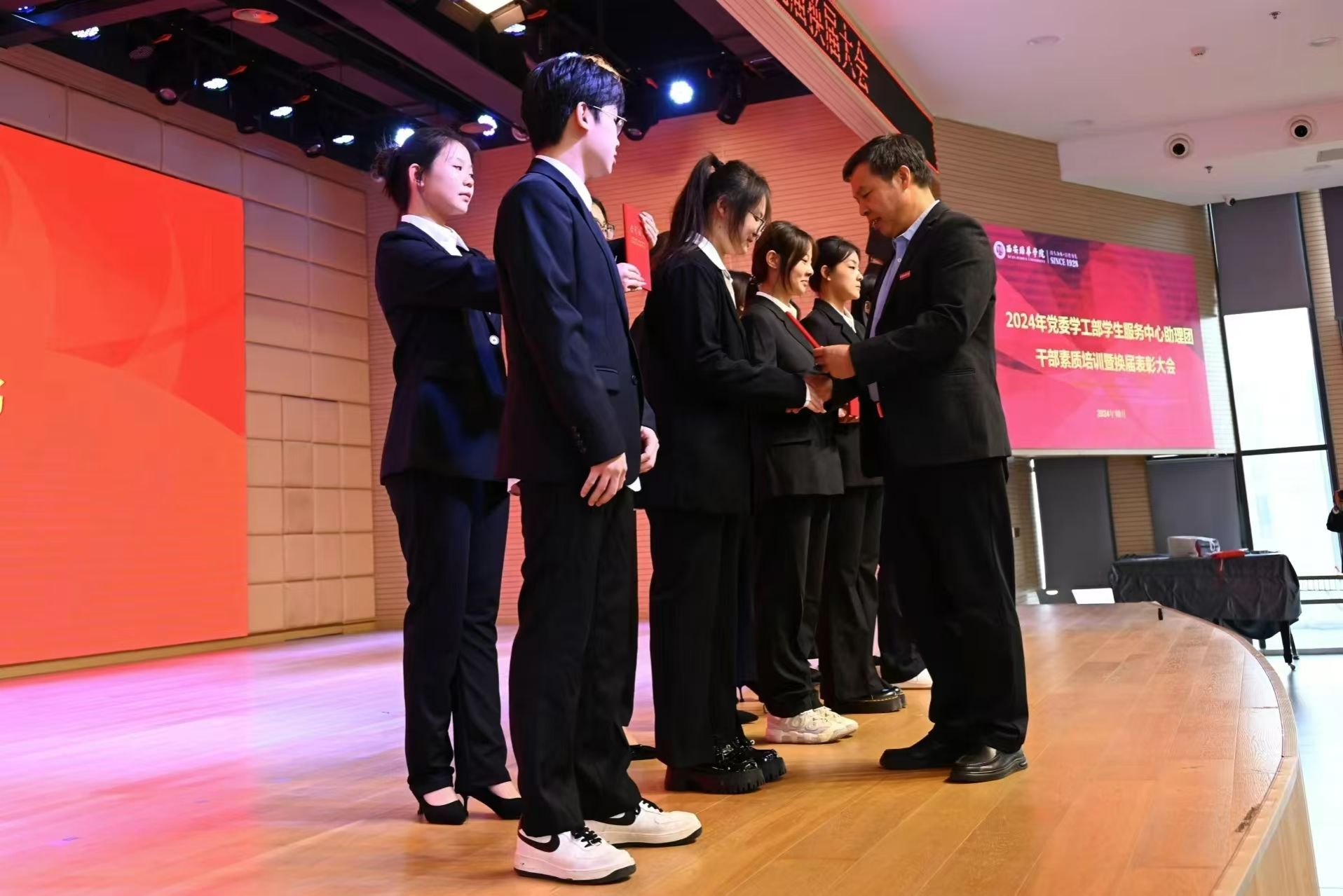 (学生服务中心江俊瑞老师为优秀学生干事代表颁发荣誉证书)