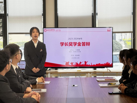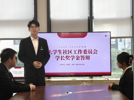 为进一步发挥学长在学生自我教育、自我管理、自我服务、自我监督中的主体作用,充分调动学长工作的主动性、积极性,进一步落实《西安培华学院学长奖学金评定办法(试行)》,秉承公平、公正、公开的原则,大学生社区工作委员会于2024年11月8日举行了2023-2024学年“社区学长”奖学金竞选答辩会。
