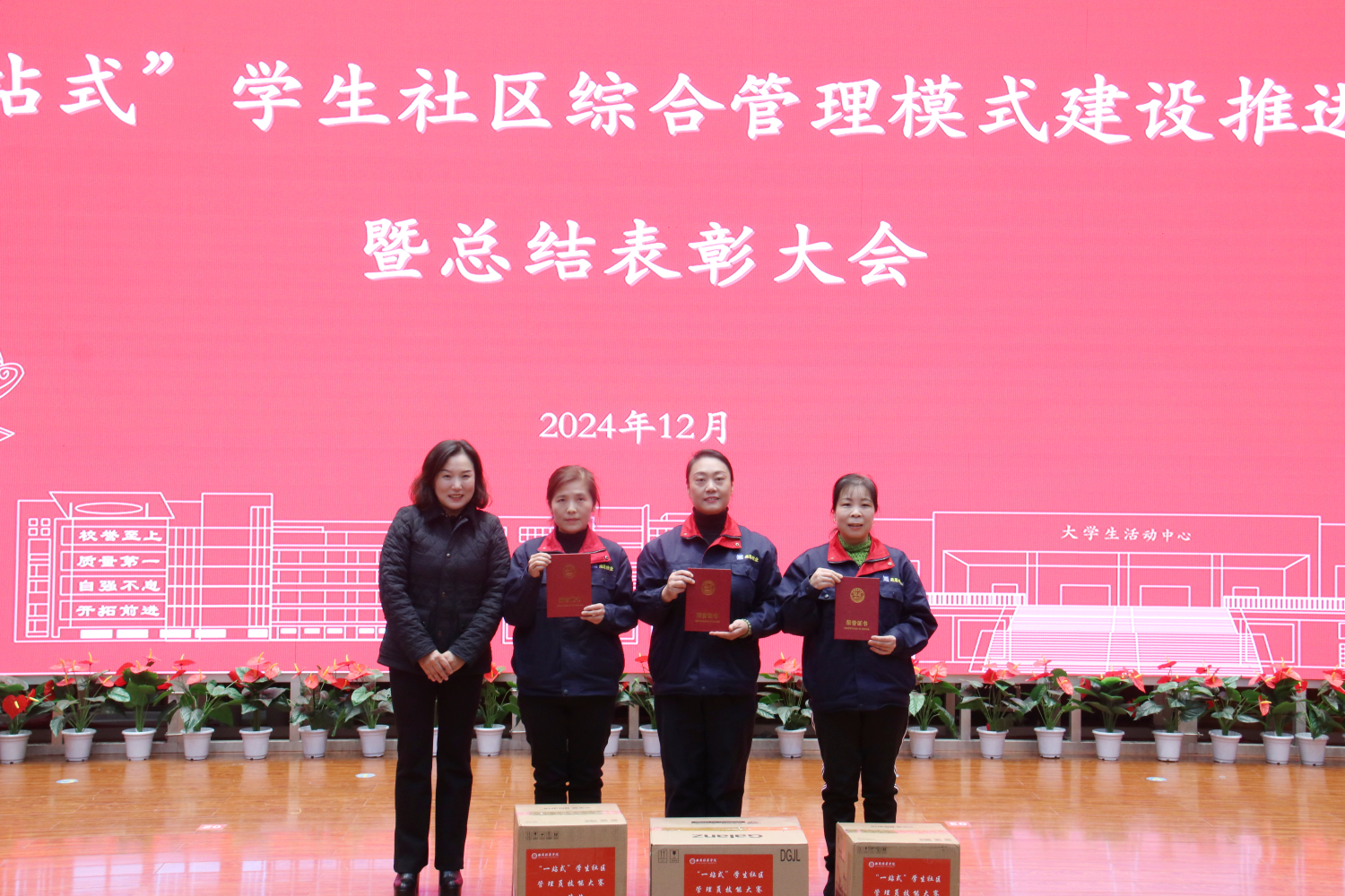 “一站式”学生社区成立了学生自治组织,建立“社区-楼-层-寝室”四级网格化学生管理服务体系,激发学生内生动力,凸显学生主体作用。为表彰学生社区楼长、层长的工作成绩,大会为社区学生干部颁发荣誉证书。