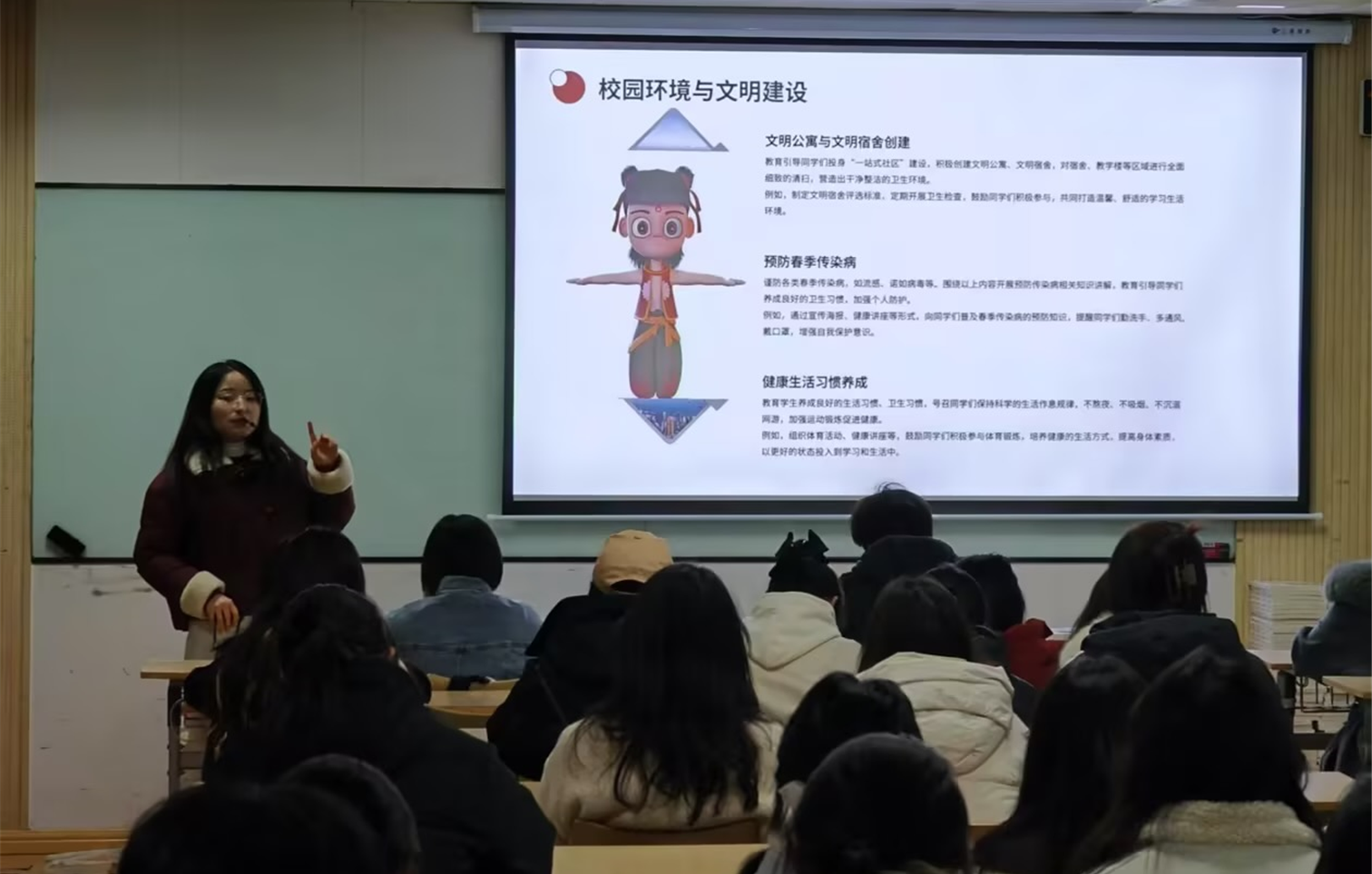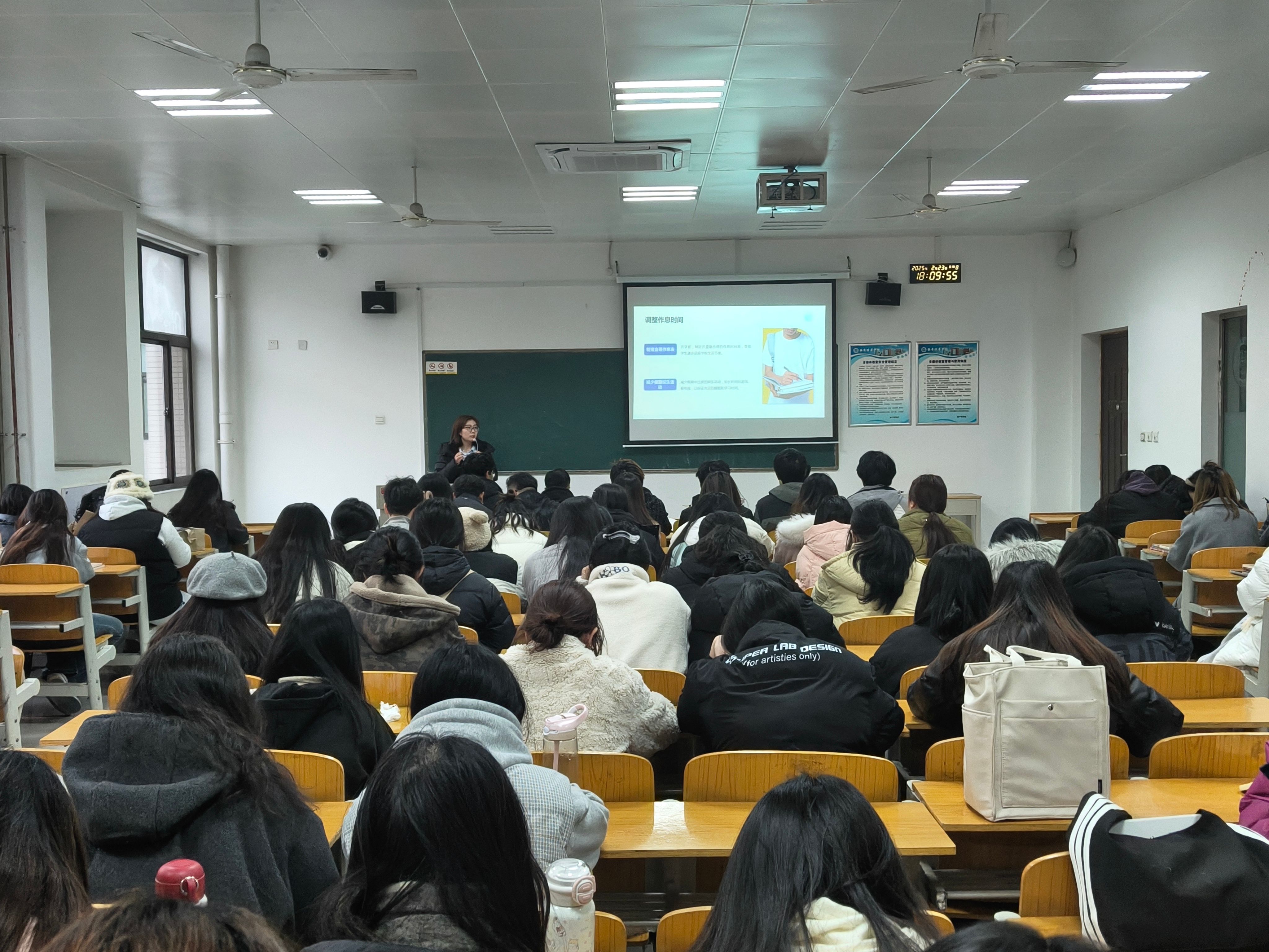 班会上,辅导员们引导同学们将注意力从精彩的寒假生活回归到校园生活,调整生物钟适应学校规律作息,激发学习兴趣和动力。希望同学们新学期要勇于破除贴在身上的“旧标签”,以实际行动创造积极的“新人设”,鼓励大家结合自身实际探寻适合自己的学习方法,科学设置学习、生活新目标,并持之以恒努力达成目标。同时结合DeepSeek等热点事件,引导同学们关注、思考AI与学科、学习和生活融合的动向,培养综合全面的理论思维和能力。