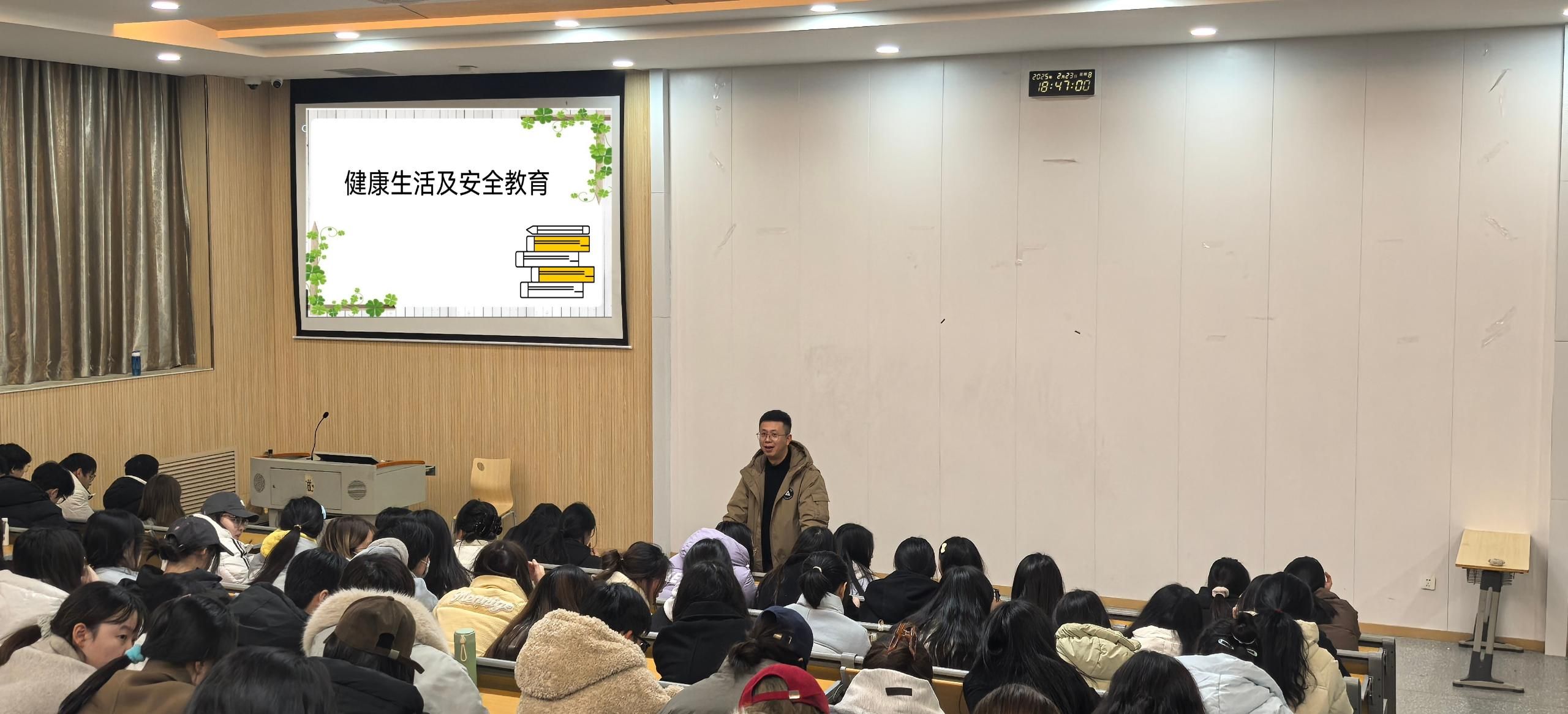 安全是开学“第一课”,更是贯穿一生的必修课。班会开展了安全教育。希望全体同学们要做安全责任的践行者,从自身做起,遵守校规校纪,不心存侥幸、不麻痹大意,主动学习安全知识,提升自护能力。辅导员一是重点围绕消防安全、用电安全、心理情感、网络安全等内容,开展扎实有效的安全主题教育。二是通过了解学生寒假期间的学习生活情况,掌握学生的思想动态。三是为预防各类春季传染病,如流感、诺如病毒等,围绕以上内容开展预防传染病相关知识讲解。四是教育学生养成良好的生活习惯、卫生习惯,号召同学们保持科学的生活作息规律,不熬夜、不吸烟、不沉溺网游,加强运动锻炼促进健康。