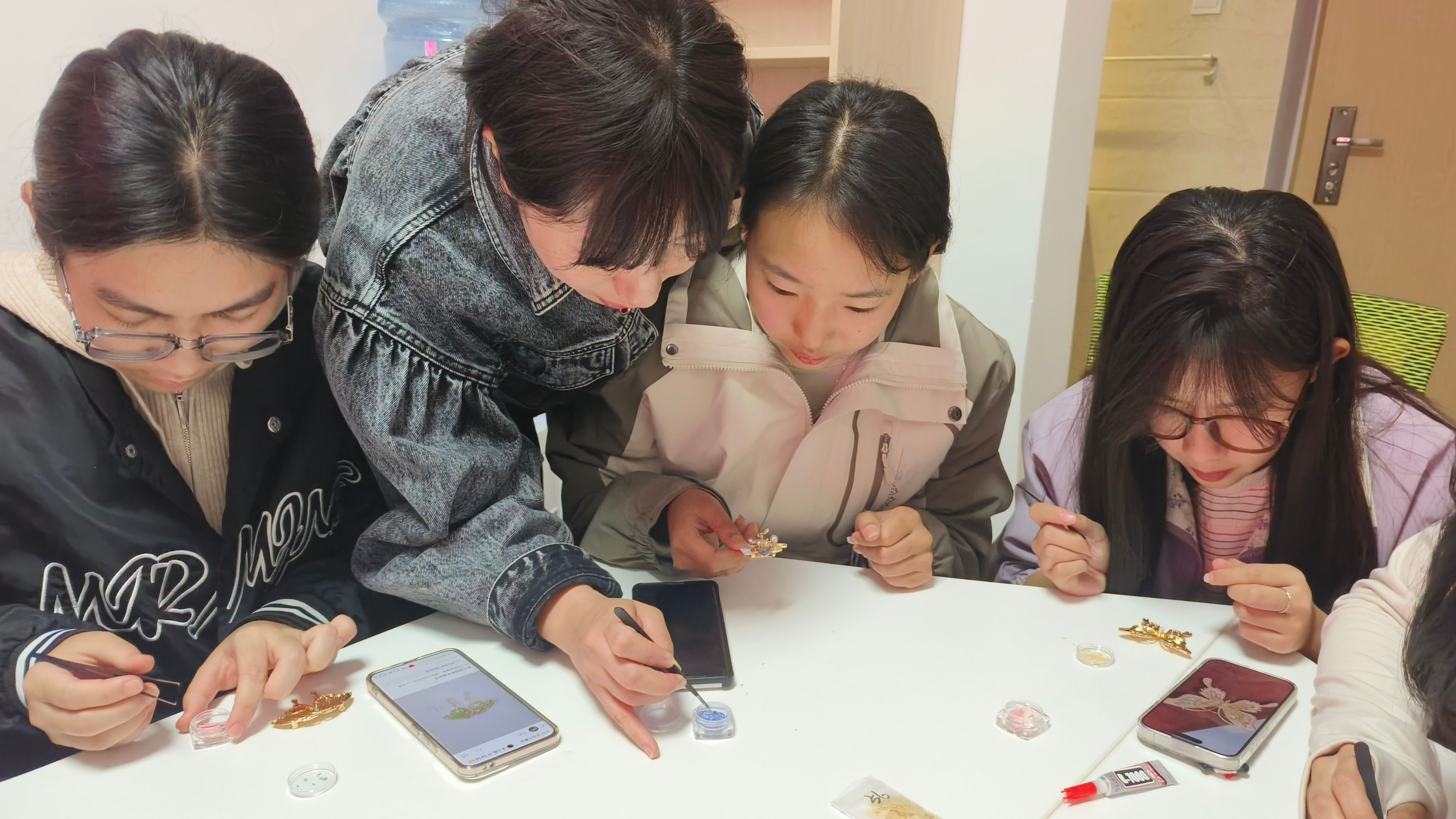 活动中,石老师为学生详细讲解螺钿饰品的制作过程,从选材、切割、打磨到镶嵌,让参与学生了解螺钿的艺术文化价值。