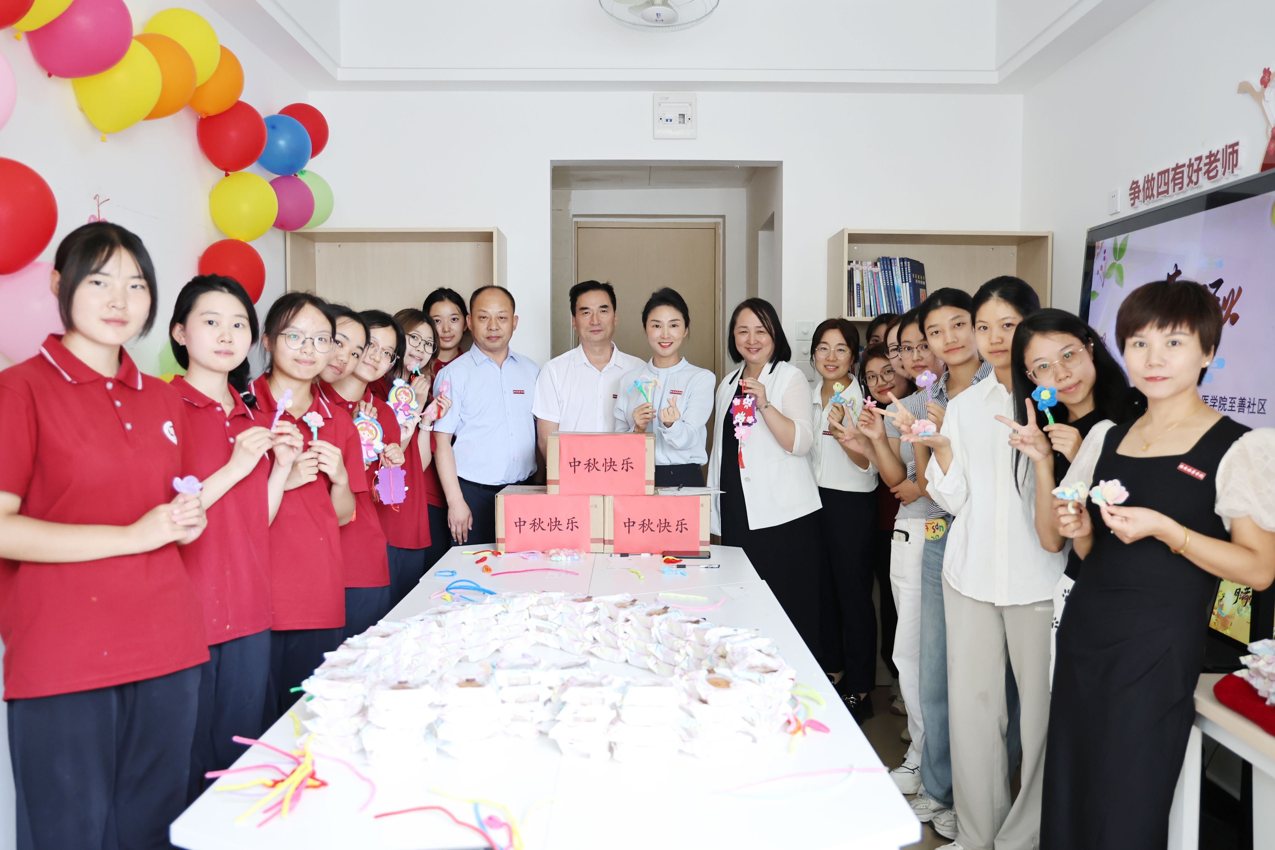(校领导为同学们发放月饼欢度中秋)