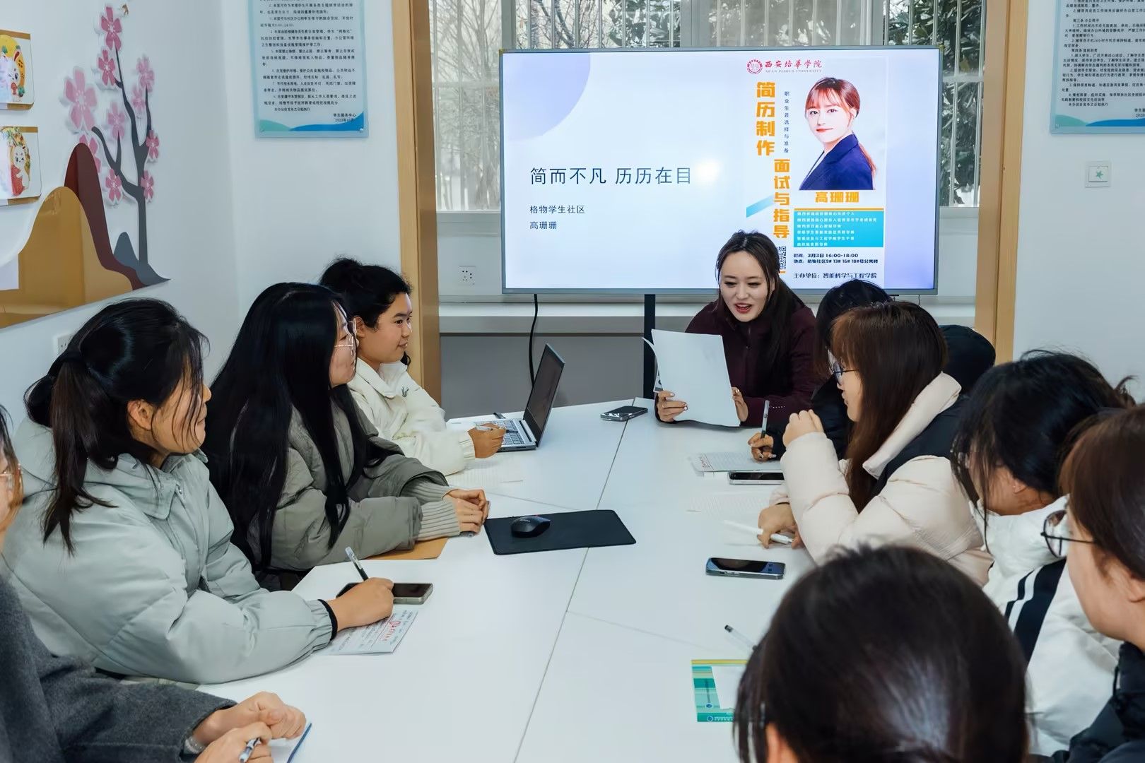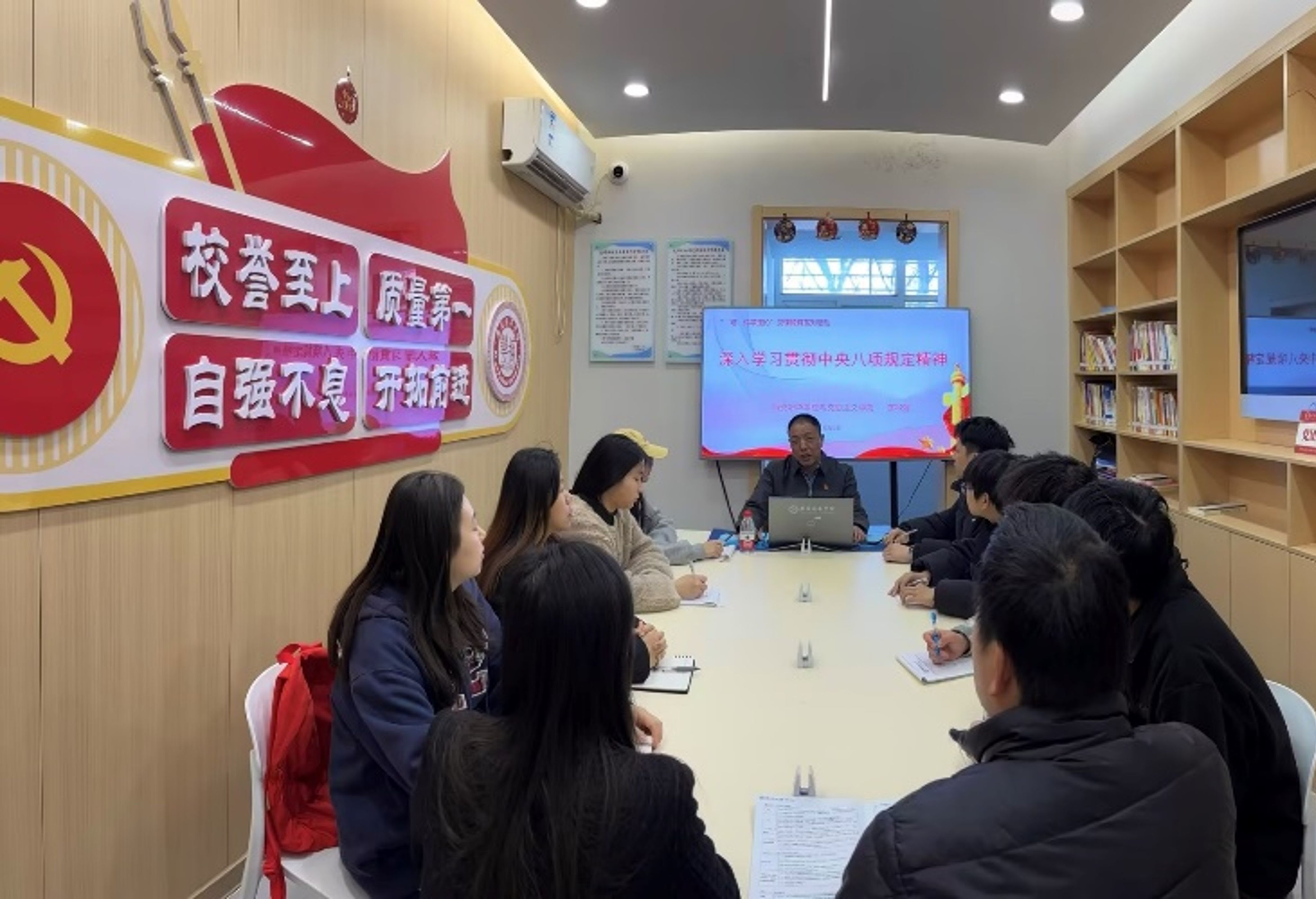 辅导员老师白天在社区办公,随时处理学生事务,夜间驻楼值班,为学生提供全时段的关怀与保障。同时深耕校外资源,定期开展专家讲座、优秀校友分享等活动。将校内外的育人力量转化为学生成长的强大推动力,形成了全员育人的良好格局。