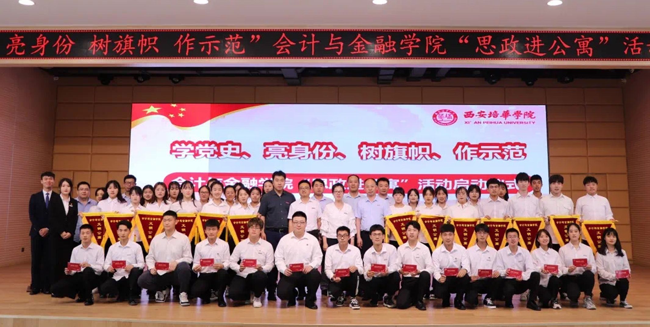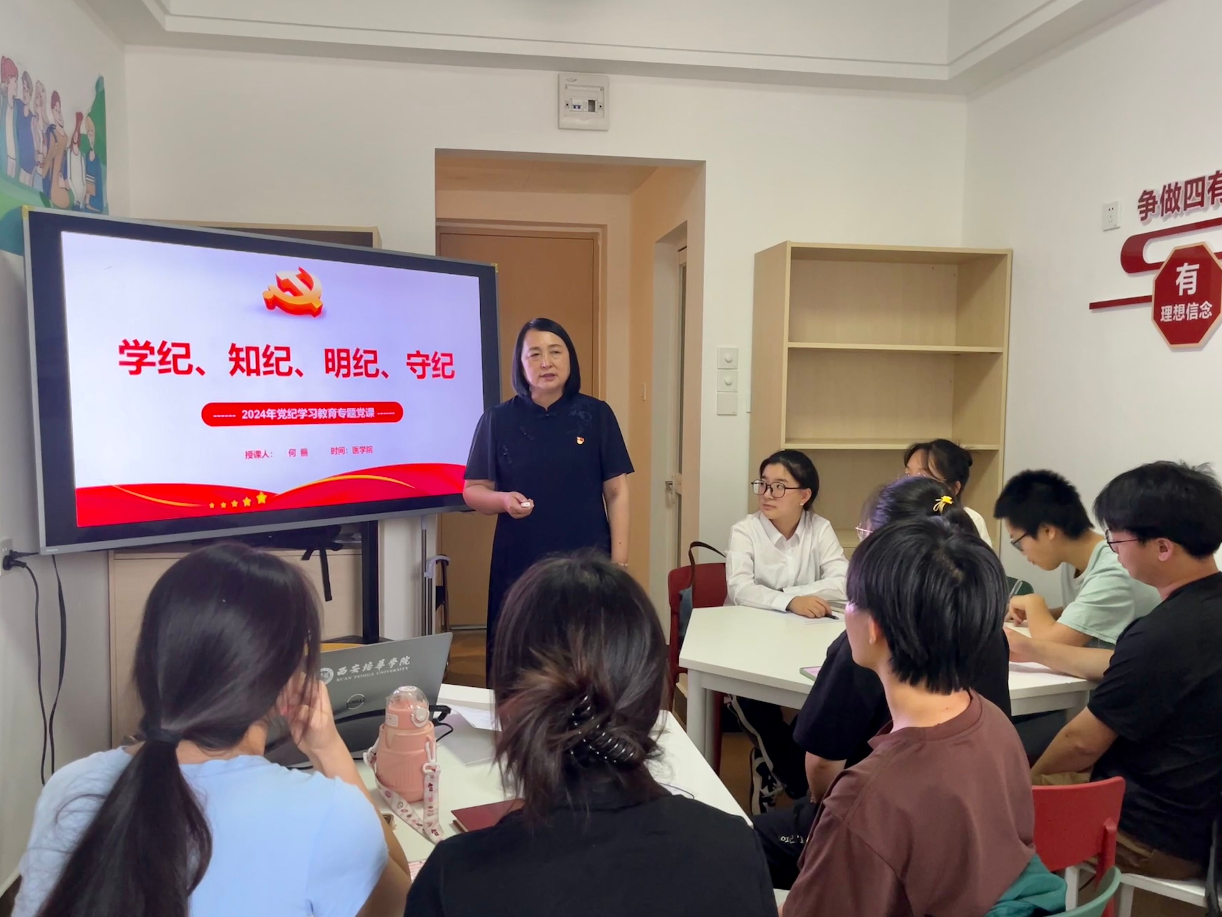 学校立足“一站式”学生社区党建前沿阵地,学校党委成立了“一站式”学生社区领导小组,定期部署学生社区工作。每栋公寓楼均设立功能型党、团支部,建立党团活动室,定期开展党团工作。在学生社区开展“微党课”、党员先锋亮身份、普法宣讲进社区、红色党史学习等特色党建活动,将“党建+育人”深度融合于学生社区建设,助力学生筑牢理想信念根基。