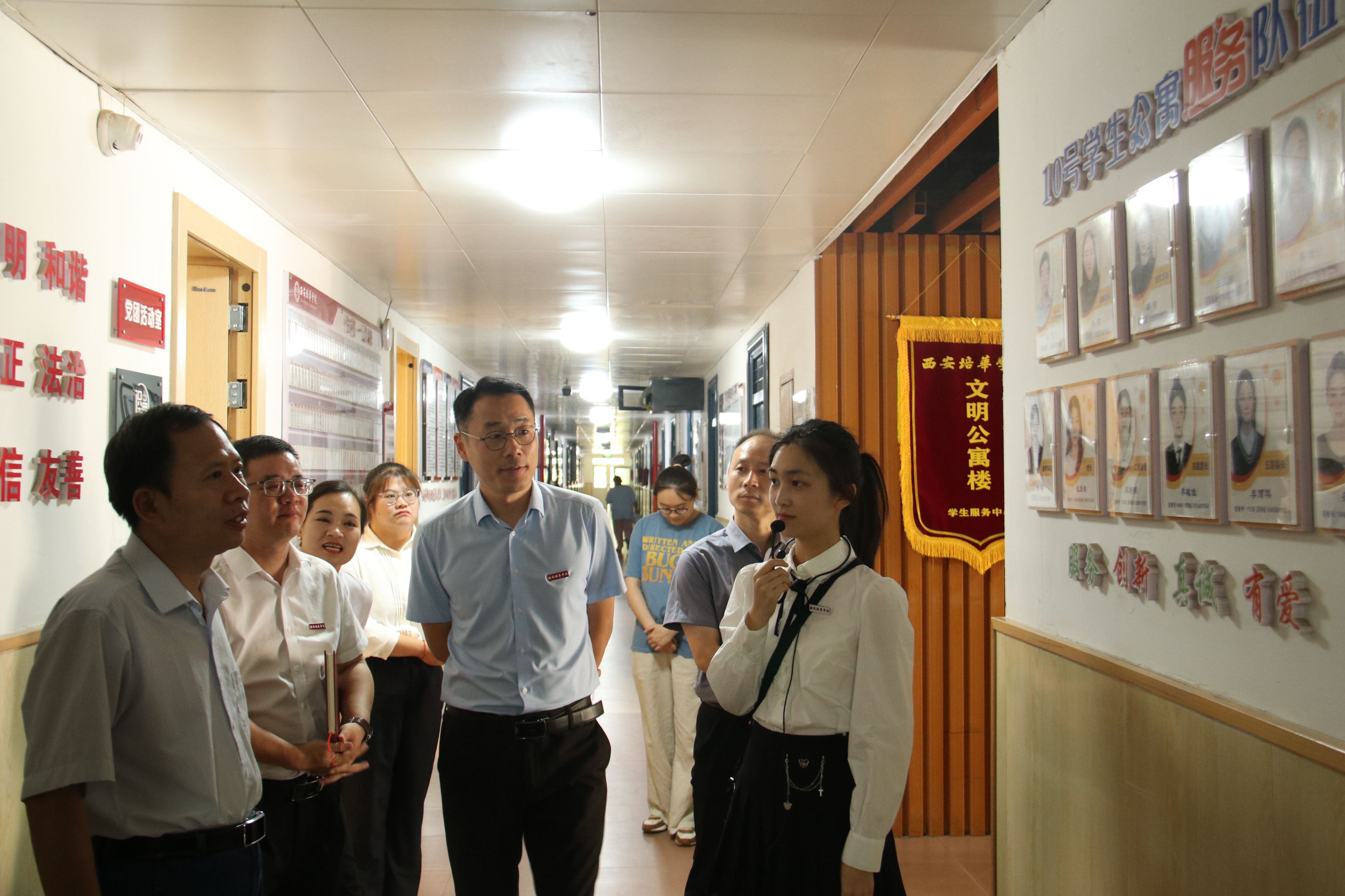 5月15日,陕西省委教育工委专家组成员,西安交通大学党委学工部副部长李新安、西安外事学院党委学工部部长赵联章,西安电子科技大学党委学工部副部长李超,莅临我校开展“一站式”学生社区综合管理模式建设质量评级调整验收工作。通过实地考察、资料查阅、座谈交流等环节,对我校“一站式”学生社区建设工作进行全面视察与复检。