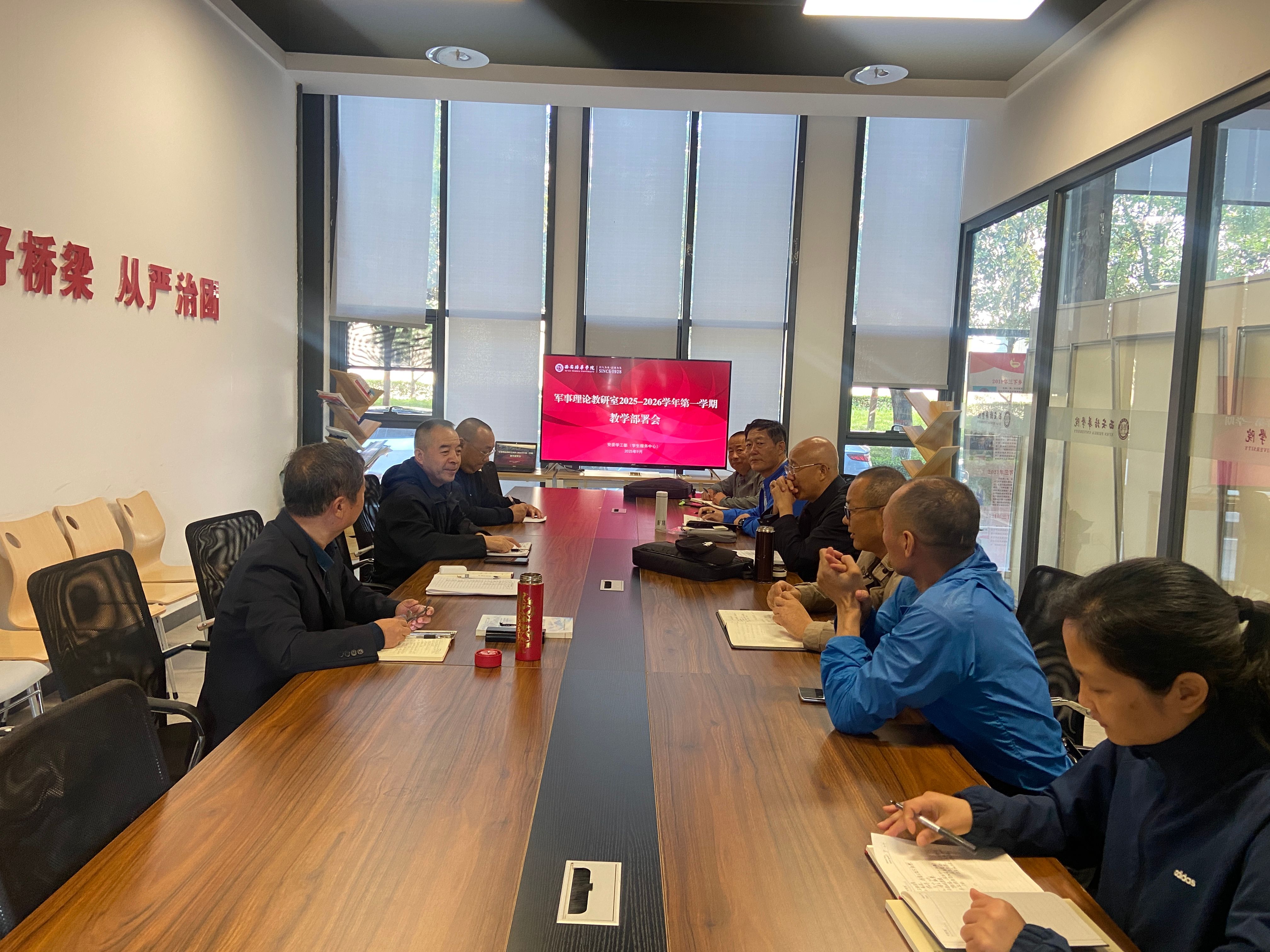 会议最后,王宏社主任作总结讲话,并对新学期教学工作提出三点明确要求:一是严把教学内容质量关,全体教师需持续更新知识储备,确保教学内容准确权威、与时俱进,紧密贴合国家国防教育导向,杜绝出现知识点偏差。二是强化教学过程管理,严格遵照教学计划推进课程,做好学生出勤统计、课堂互动记录、学习效果反馈等工作,实时掌握学生学习动态,及时调整教学策略。三是深化资源整合与部门协同,充分利用校内学科资源、校外国防教育资源,推动军事理论教学与科研工作深度融合,形成“教学+育人”合力,拓展国防教育场景。