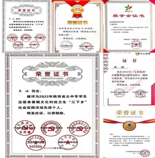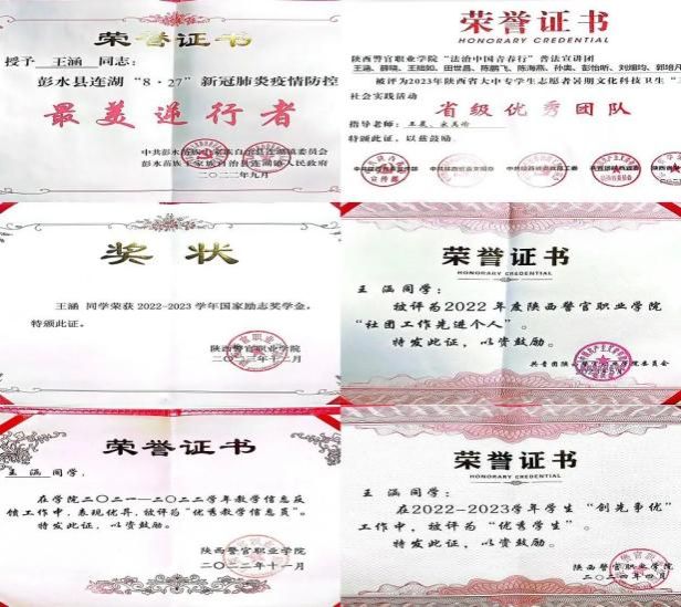王涵同学始终刻苦学习,努力掌握各项法律专业知识,不断提高自己的专业素养。每学期专业和综合成绩位列年级前茅。他认为:“学习成绩永远都只是分数的象征,人品才是最高的学位。无论过去在陕警院法律系还是在培华学院法学院的学习,都应着重提高自己的情商和修养,练就过硬才干,德才兼备,全面发展”,他被评为2022-2023年度中国大学生自强之星。