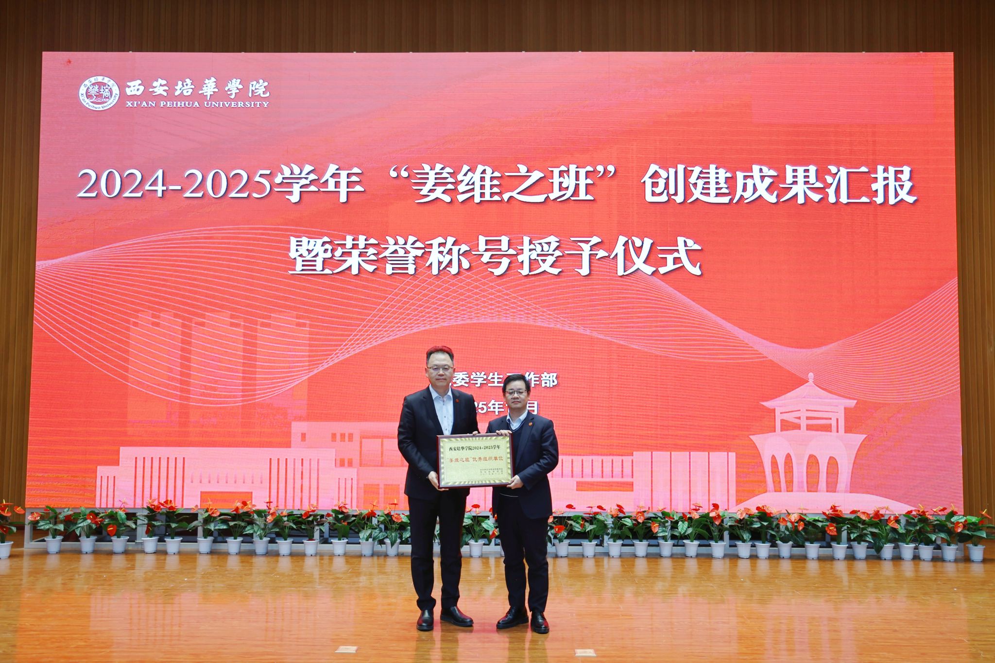 西安培华学院理事长姜波为”姜维之班“创建优秀组织单位传媒与设计学院授牌