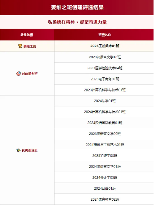 2023汉语言文学16班等4个班级获“姜维之班”创建提名班称号