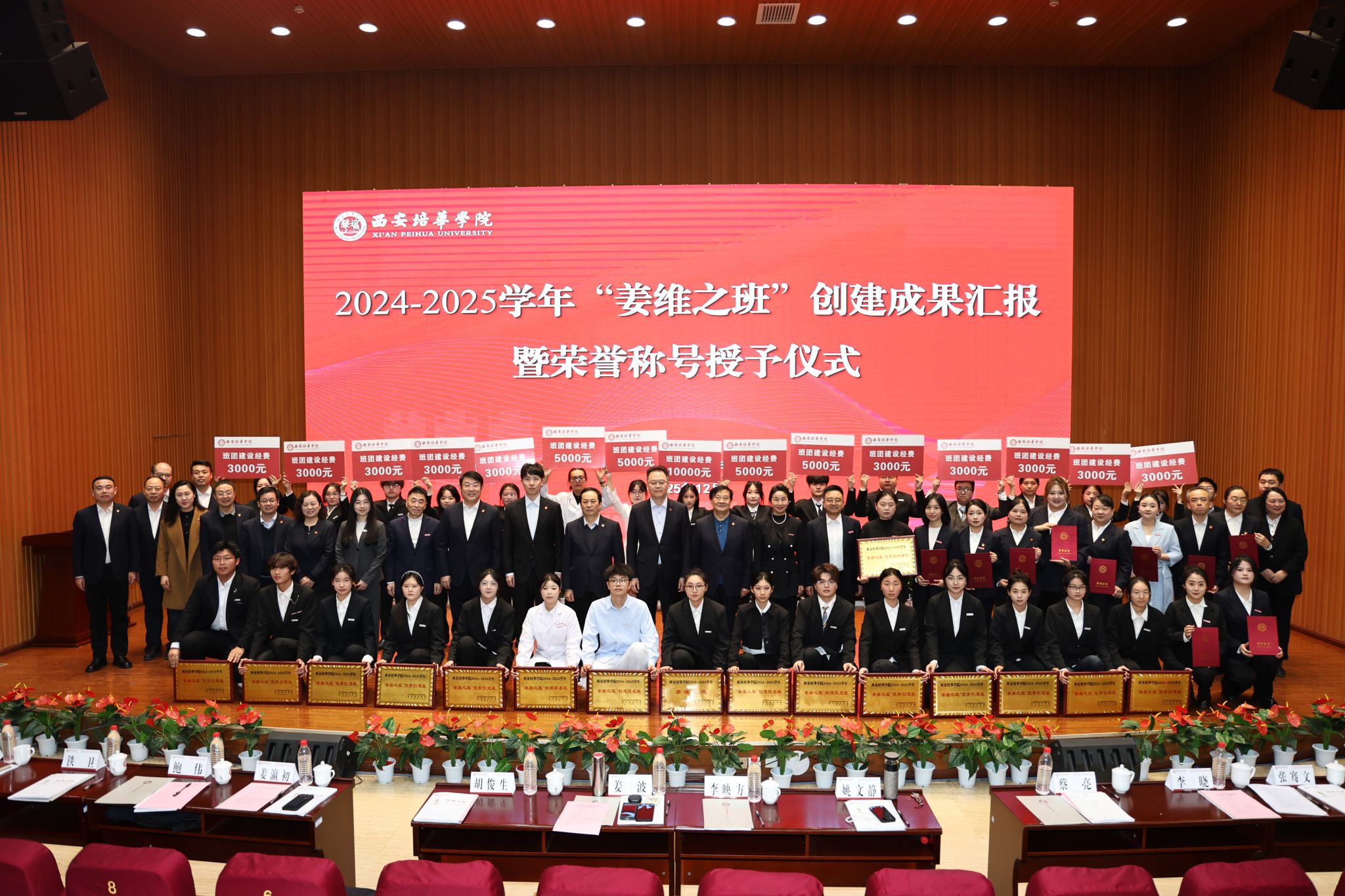 12月24日,2024-2025学年“姜维之班”创建成果汇报暨荣誉授予仪式在维之图书馆报告厅举行。西安培华学院理事长姜波,校长李映方,常务副校长胡俊生,副校长、党委副书记姚文静,理事会秘书长、副校长姜瀛初,校长助理鲍伟,党委副书记蔡亮,教务管理中心主任铁卫、各二级学院党委(党总支)书记(副书记),学业导师代表,全体辅导员,50名大众评审及培华青年共同感受优秀班集体的成长历程,见证集体闪耀,共襄荣光。