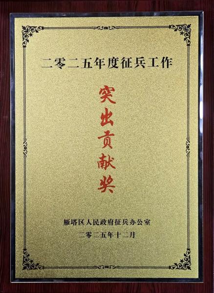 在2025年征兵工作中,西安培华学院再次顺利完成任务,并获雁塔区“2025年度征兵工作突出贡献奖”。