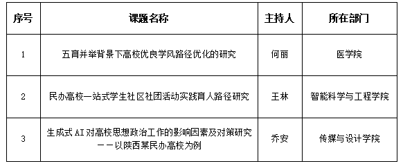 2024年度陕西高校辅导员工作研究课题——学校初评公示名单