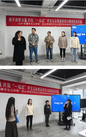 为深入落实立德树人根本任务,全面推进“一站式”学生社区综合管理模式建设,进一步发挥朋辈力量在学生社区中的育人成效,扎实做好社区育人工作,10 月 31 日,一场聚焦于“携手朋辈力量,共筑‘一站式’学生社区新篇章” 的辅导员主题沙龙活动在创客中心举办。出席此次沙龙活动的包括:党委学生工作部副部长杨媛,各学院党委书记(副书记)、学业导师代表智能科学与工程学院杨坤老师、鼎晟物业代表庞磊经理、一站式学生社区管理老师代表、辅导员代表以及学生代表,本次活动由智能科学与工程学院辅导员仵怡欣和石戎睿星老师主持。
