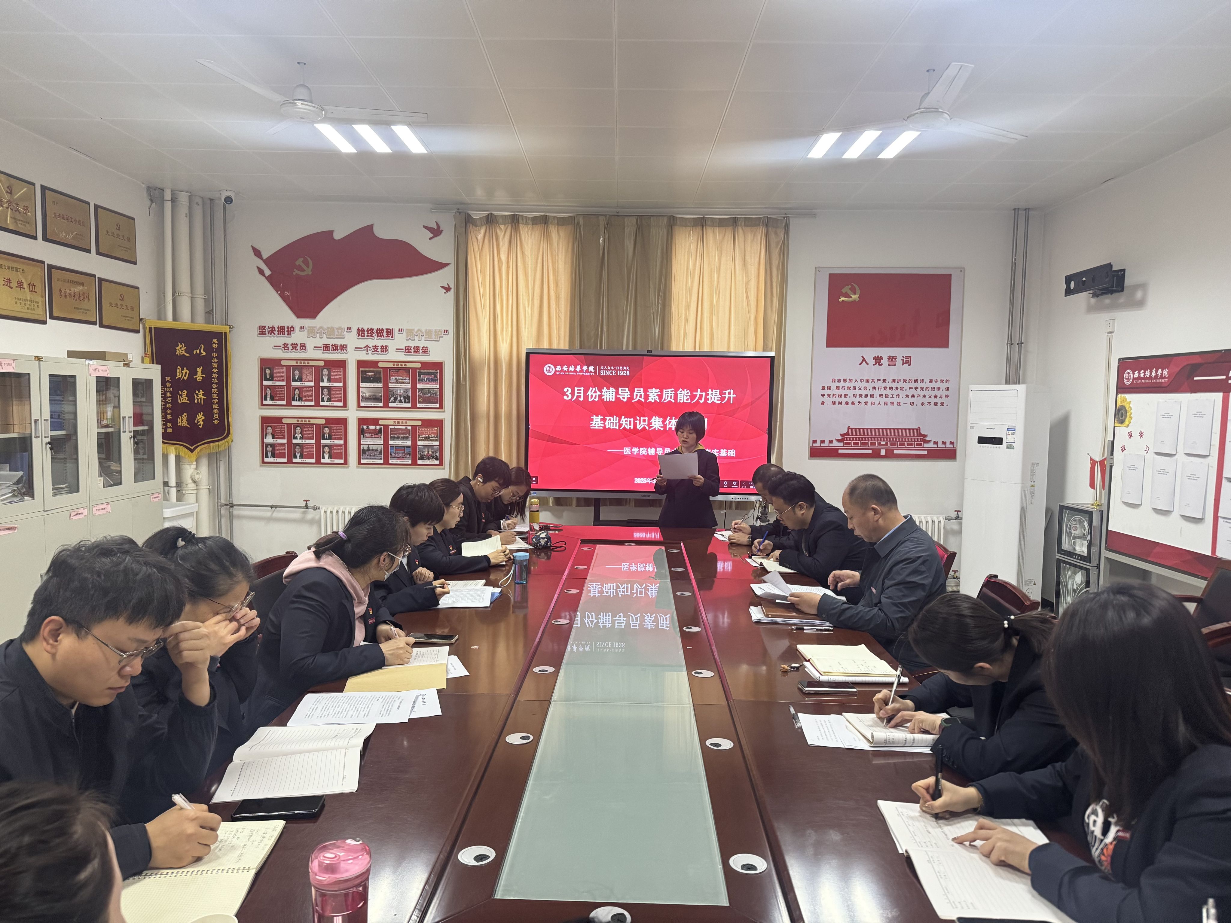 针对三月份的月度知识测试及资助大赛内容的学习,医学院邀请了罗海芸、刘慧两位老师经验丰富的老师进行领学,使辅导员们对近期教育会议、辅导员职称评审、国家资助政策、退役士兵学费补偿等相关内容有了更深入的理解和掌握。通过此种形式的学习,辅导员们能够更好地适应教育政策的变化,为学生提供更加精准和有效的指导。
