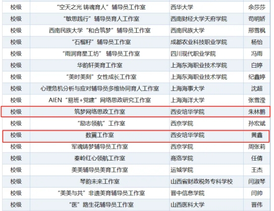 筑梦网络思政工作室以大学生思想政治教育为核心目标,以“网络原创网文+短视频”为主要题材,探索新时代辅导员网络思想政治教育新阵地。目前工作室成员发表思政论文20余篇,立项省级、校级课题10余项,指导学生团队获得国家级、省市级、校级等比赛72项,主持校级网络文化工作室1个,运营微信公众号、视频号,拍摄视频100多部,曾拍摄《培华之歌》选派参加全国大学生网络文化节决赛角逐。