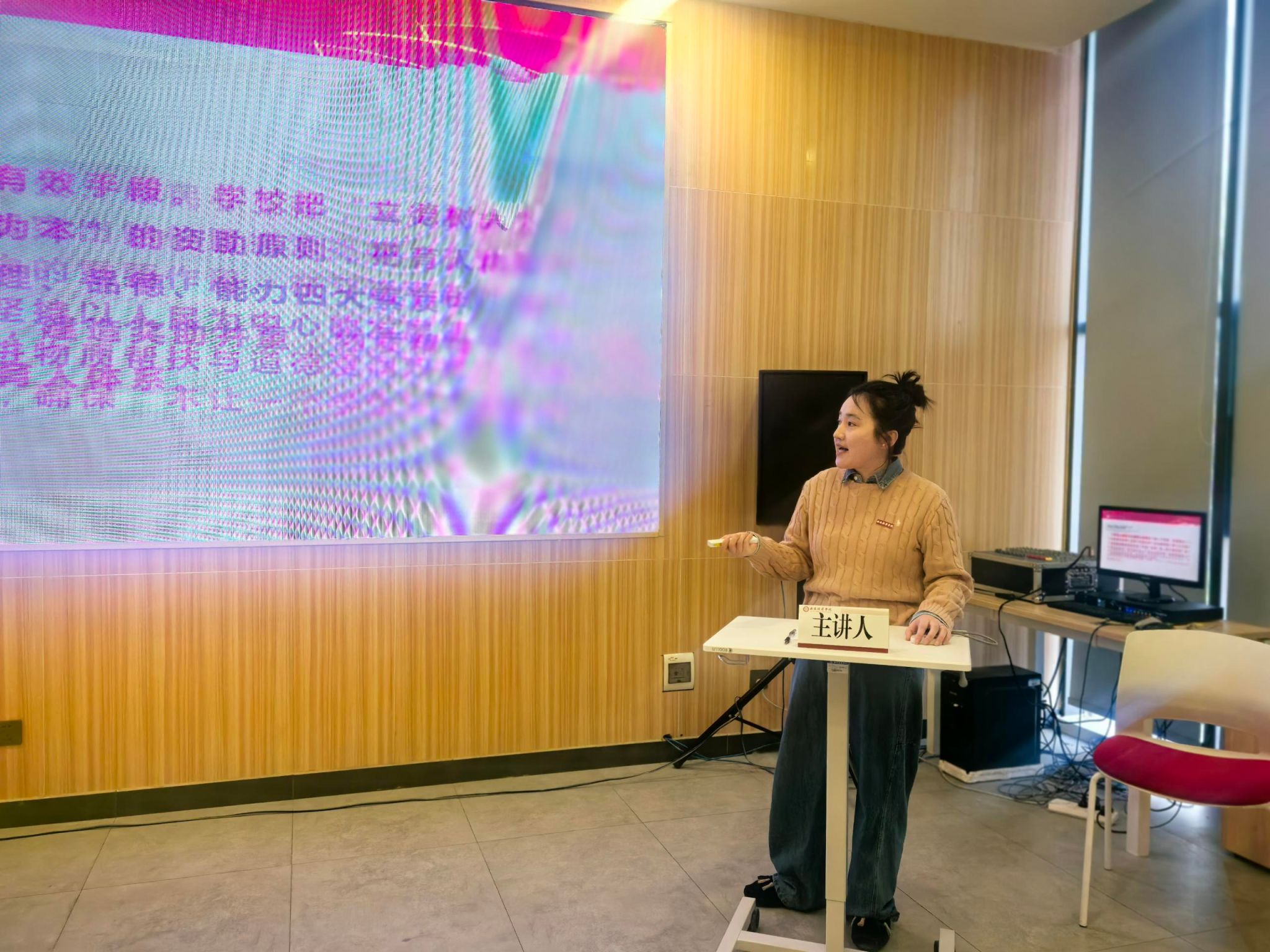 随后,党委学工部副部长杨媛通过“姜维之班”创建与班级建设为新入职辅导员开展专题讲座。讲座围绕创建意义、创建目标、创建流程及创建指标等核心内容展开全面解读,系统梳理工作要点,为新入职辅导员后续高效推进“姜维之班”创建及班级创建工作奠定坚实基础。