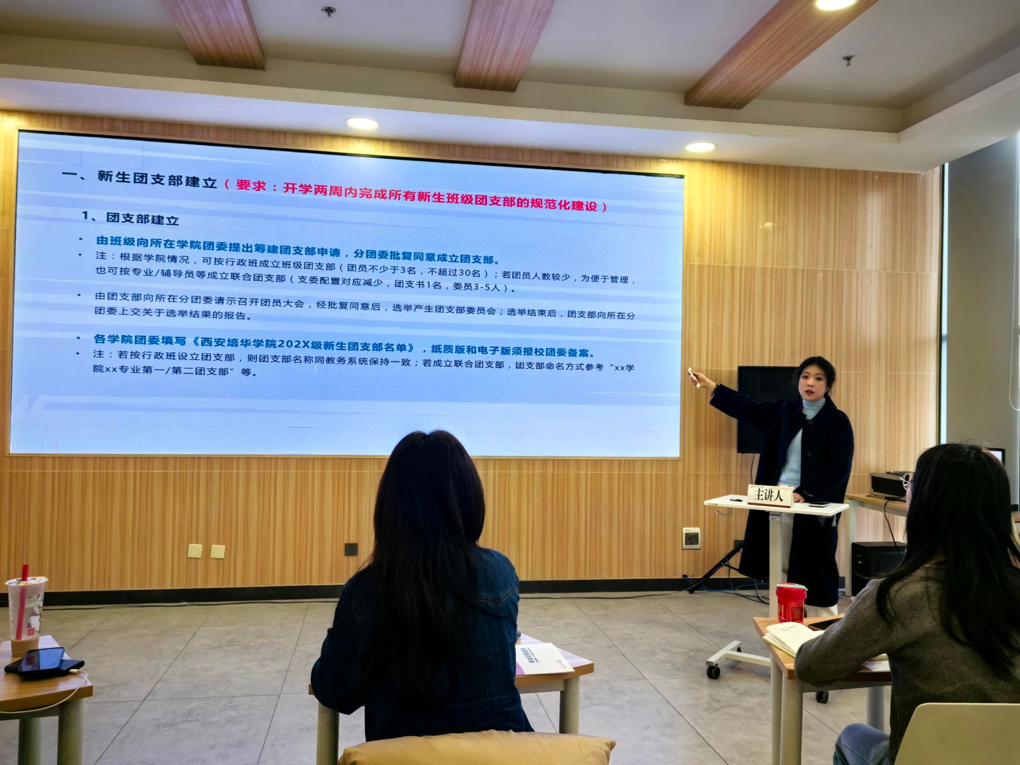 学生服务中心办公室主管樊海英、思政干事黄晨分别围绕“奖、助、贷、补、勤政策解读与流程”、“学风建设”展开讲解,助力新辅导员快速掌握学生事务管理核心内容;“一站式”学生社区办公室负责人王婷、校团委组织部部长林文婷分别从“学生宿舍管理与文化建设”、“基层团组织建设与党团员发展”为新辅导员提供了具体工作方法与实践指导。