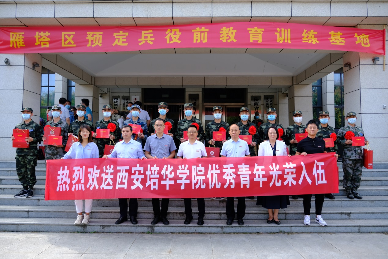 为激发广大师生拥军热情,体现我校对参军大学生的关心关怀,我校党委学工部(征兵工作站)于915日前往雁塔区预定兵役前教育训练基地欢送我校新兵踏上军旅征程,履行保家卫国的光荣义务。党委学工部副部长、征兵工作站站长姚斌,传媒学院党委书记、行政副院长江俊瑞,建筑与艺术设计学院党委书记、行政副院长权勇太,会计与金融学院党委书记、行政副院长史立军,医学院党委副书记何丽,学生服务中心征兵工作干事黄珂参加此次送兵仪式,欢送新兵入伍。