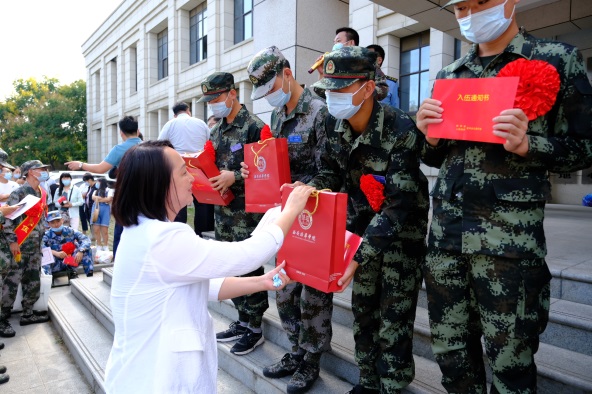 各学院领导为入伍新兵送上入伍纪念品